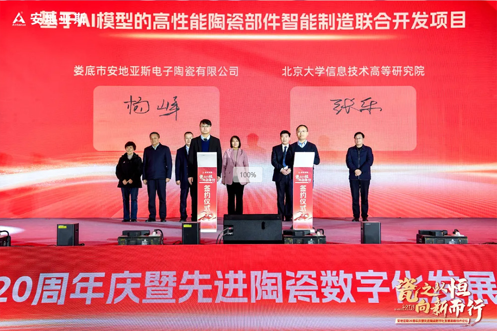 活動(dòng)中,在市領(lǐng)導(dǎo)和各位嘉賓的見(jiàn)證下,安地亞斯與北大信息技術(shù)高等研究院簽約“基于AI模型的高性能陶瓷部件智能制造聯(lián)合開(kāi)發(fā)項(xiàng)目”,與世界陶瓷科學(xué)院簽約“共建高性能先進(jìn)陶瓷材料聯(lián)合實(shí)驗(yàn)室”。北大信息技術(shù)高等研究院高級(jí)研究員、智能物聯(lián)軟硬件產(chǎn)業(yè)化實(shí)驗(yàn)室主任易海明圍繞《人工智能賦能新型工業(yè)化》,世界陶瓷科學(xué)院院士、亞太材料科學(xué)院副院士林華泰圍繞《高性能氮化硅基陶瓷及零部件研究》,分享了最新的研究成果和實(shí)踐經(jīng)驗(yàn),共同探討人工智能、硅基陶瓷的最新進(jìn)展、創(chuàng)新應(yīng)用和未來(lái)趨勢(shì),讓大家受益匪淺。